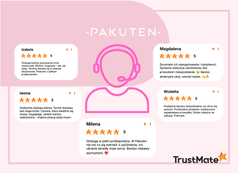 Z ponad 96% klientek polecających Pakuten na TrustMate jasno wynika, że spełniamy oczekiwania współczesnych kobiet. Jesteśmy aktywnym partnerem TrustMate od kwietnia 2025 roku, a nasz wskaźnik odpowiedzi na opinie, w tym także negatywne, wynosi aż 99,63%.